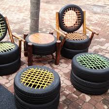Par ailleurs, le monde de la décoration s’est peu à peu approprié ce matériau pour en faire de véritables œuvres d’art. On voit alors des pneus usés se transformer en mobiliers (pouf, table basse…) ou en bacs à fleurs. Certains créateurs ont fait preuve d’imagination pour les transformer en paniers, en ceintures, en chaises et même en chandeliers.